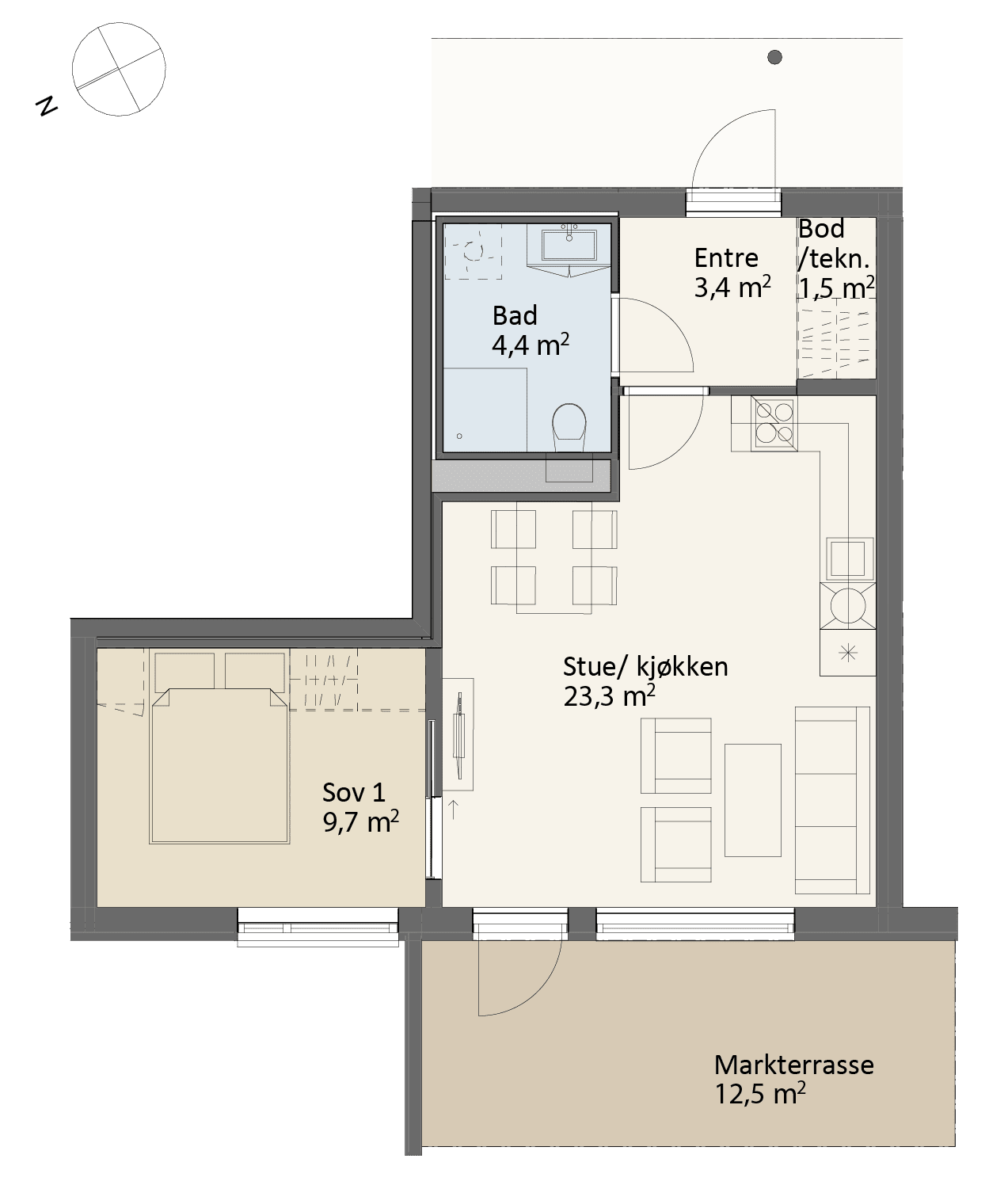 Smart 2-roms med fin markterrasse
