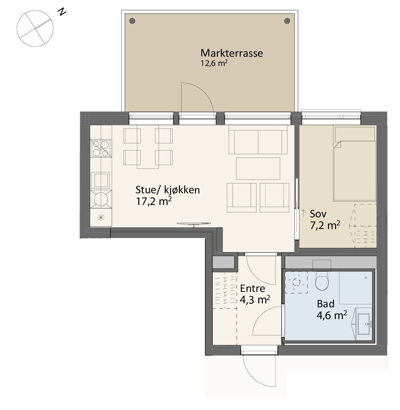 En kompakt og god løsning for den ønsker å etablere seg. Her er entré med garderobeplas, et flott bad/vaskerom og et soverom. Stuen er godt utnyttet og har samme høye kvalitet på kjøkken og hvitevarer som en større leilighet. Stor og fin terraasse med på kjøpet.
