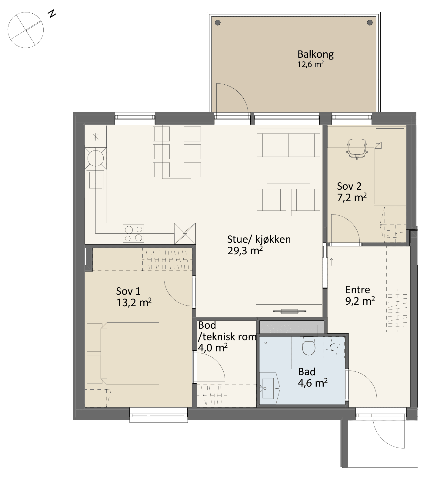 En stor og fin entré ønsker deg velkommen inn. Her er ett stort hovedsoverom, samt et ekstra rom for kontor, hobby eller gjester. Vakkert bad med dusjhjørne og bod. Romslig løsning med stue og kjøkken sammen - utgang til balkong på 12,5 kvm.